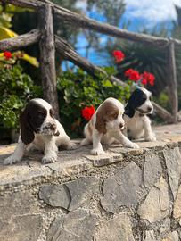 Disponibili bellissimi cuccioli di cocker spaniel di 65 giorni. Ci sono disponibili sia maschi che femmine di diversi colori, tricolore, bianco arancio, bianco nero, bianco cioccolato e blu roano. I cuccioli verranno consegnati con ciclo di vermifugo, vaccino, microchip, libretto sanitario e pedigree ENCI. Entrambi i genitori sono visibili. No perditempo. Cell 3294326438