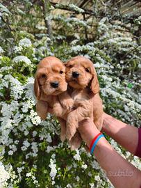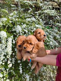Cuccioli di cocker spaniel inglese, disponibili da dopo Pasqua. Disponibili maschi di colore fulvo. Si consegnano con vaccino, microchip, visita e libretto veterinario, sverminazioni e pedigree. I genitori sono di nostra proprietà. Per altre foto o informazioni non esitate a contattare, preferibilmente whatsapp.