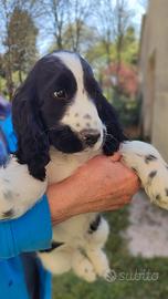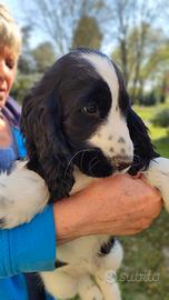 Disponibile cucciolo maschio bianco e nero, nato il 20 gennaio 2025, con microchip,pedigree, sverminazioni e tutte le vaccinazioni. Genitori visibili con test genetici sulle patologie ereditarie.