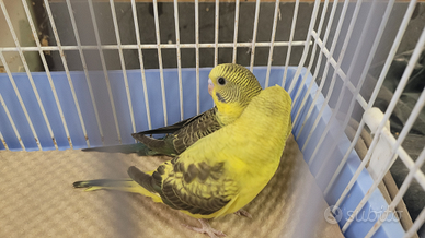 Disponibili due cocorite ala nera femmine di circa 3 mesi, una opalina l'altra no. Sono serie verde, portatrici di ciuffato Euro 18 cadauna. Provincia di Rimini.