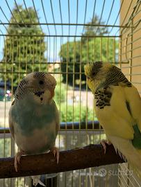 Vendo coppia di cocorite allevate a mano di circa due anni. La vendita comprende la gabbia e relativi accessori : abbeveratoi, mangiatoie, giochi, trespoli e dondolo.