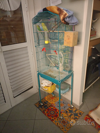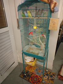 Vendo n.3 cocorite con Gabbia di un bel colore azzurro con piedistallo ,nella foto non e stata ripresa ma solo la gabbia è costata 90 euro. Volendo posso regalare anche una gabbia più piccola per il trasporto
