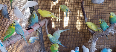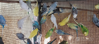 Cedo pappagallini ondulati, cocorite, parrocchetto ondulato selezionati da allevamento amatoriale con 30 anni di selezione, pappagalli allevati in purezza per mutazione forma taglia e posizione mutazioni disponibili allevate in purezza: ancestrali , albini, lutini, rainbow, ala chiara, ala grigia, blu , blu cobalto, viola, blu faccia gialla, opalino malva, opalino blu faccia gialla, ala merlettata occhi rossi, giallo occhio nero, bianco occhio nero, clear body, spangle, pezzati dominanti e pezzati recessivi tutti animali perfetti sani e molto prolifici astenersi curiosi o perdi tempo contattare solo se seriamente interessati prezzi da 15€ cadauno 30€ la coppia mutazioni rare 25€ cadauno 50€ la coppia