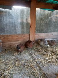 Disponibili due maschi tenebrosi di Colino della Virginia, bellissimi e sani nati da cova naturale la scorsa estate (sono i due esemplari marrone scuro in foto). Sono disponibile anche a scambio con galline ovaiole o checchette per info contattatemi