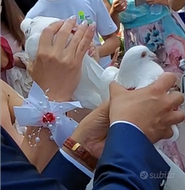 Colombe bianche ,a richiesta anche con gabbia con sovrapprezzo di 20 euro .Se viene restituita vengono restituiti i 20 euro.Le colombe una volta liberate tornano sempre nella loro casa in un paio di giorni .