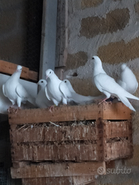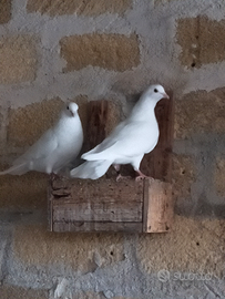 Per esubero tolgo bellissime coppie di colombe esclusivamente bianche per eventi quali matrimonio volo di colombe o altri eventi particolari o semplicemente per allevarli in voliera. Animali molto docili e si adattano molto velocemente al luogo dove si trovano. Possibilità di pulli per allevamento a mano previa disponibilità.