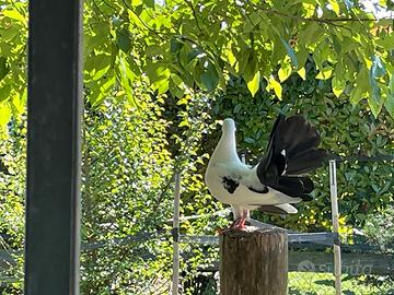 Vendo giovani esemplari di colombe pavoncelle bianche, coda nera e cappuccini pezzati bianco marrone