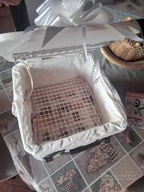 La cesta contiene max 4 colombi con all'interno stoffa lavabile dopo ogni lancio, compreso di rete nel fondo e prese d'aria. Fiocco bianco cerimoniale.