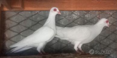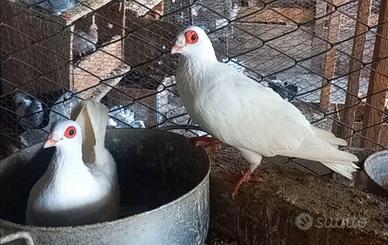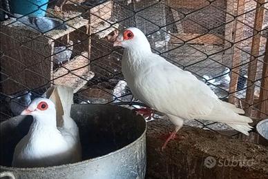Disponibili coppie di colombe occhialoni di Parma bianche maschio rosso femmina nera o da mettere con i bianchi 40 euro la coppia preferisco contatto telefonico o whattapp
