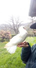 Disponibili colombi pavoncelle bianche 15 euro l'una. Disponibili inoltre altre razze di colombi, tra cui sottobanca, cauchois, texani, King, California.