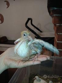 Disponibili pulli di sottobanca nero e di pavonvelle bianche, allevate a mano, abituate a stare sulla spalla o in mano, super socievoli e domestiche, da tenere come i " pappagalli" addomesticati. Mangiano dalla mano (imboccati fin dalla nascita).