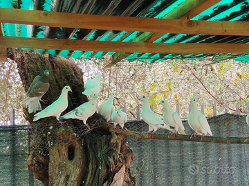 Cedo 10 Colombi viaggiatori di colori misti pezzati e bianchi solo in blocco, sono 5 coppie.Il prezzo del blocco è di 50 euro, 5 euro l uno.Chiamare solo se realmente interessati.3889877379