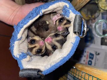 La colonia è composta da sei petauri: da tre maschi, due femmine e un cucciolo. Cedo l'intera colonia a 700 euro comprese due gabbie. Possibilità di vendita separata (senza gabbia): Femmine 200 euro Maschi 150 l'uno Cucciolo 200 euro