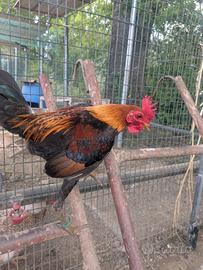 Gallo Combattente inglese moderno nano, colorazione selvatico oro. Molto piccolo e docile Esemplare giovane adatto anche a principianti Gallina nana