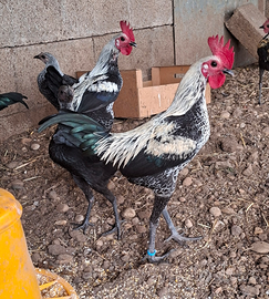 Coppie di combattente inglese moderno nano collo argento razza pura Molto docili convivono tranquillamente con altri animali nel pollaio, taglia molto piccola poco esigenti 30 euro la coppia Se interessati 3465801062 Francesco
