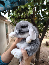 Coniglietti Ariete blu di Vienna e panda disponibili dopo svezzamento dalla mamma e già abituati al contatto umano!