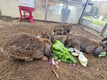Conigli ariete nano color lepre 2 femmine e 3 maschi nati a luglio. Cedo per cessazione allevamento
