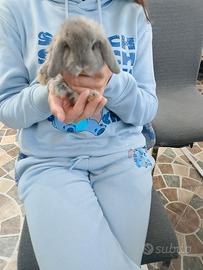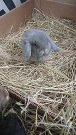 Disponibili cuccioli di conigli ariete nano minilop color blu di Vienna. I coniglietti sono molto socievoli abituati al contatto umano alla lettiera e già svezzati. Arriveranno ad un peso di 1,5 kg e al momento del ritiro vi verrà offerto un kit di mangime e fieno per i primi giorni. Per info contattare Raffaella 3668988544