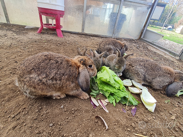 Dolcissimi conigli ariete nani color lepre nati a luglio ottima salute abituati a spazi aperti, li cedo per cessazione allevamento, valuto scambio