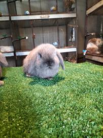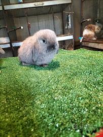 Cucciola di coniglio Ariete puro femmina nata il 16 novembre colore grigio cenere.