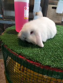 Cuccioli di conigli Ariete Maschietto di 2 mesi bianco occhi rosa.