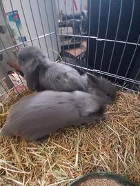 Coniglietti ariete, nati il 13 febbraio. Svezzati e pronti per entrare nella vostra famiglia . Disponibili da subito: Due neri Tre grigio ardesia Uno maculato fulvo