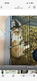 Vendo conigli ariete. Maschietto color champagne/bianco Femminuccia bianca/nera 30€ la femminuccia 30€ il maschietto Anche gabbia 35€