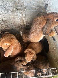 Vendo singolarmente o in blocco conigli ariete di un anno maschi e femmine varie colorazioni: fulvi, grigio perla e neri. Sono un totale di 15 conigli. Prezzo in blocco 400 euro