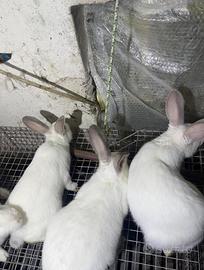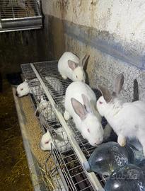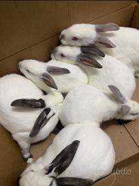 Vendo conigli cuccioli california 25 euro l'uno disponibili maschi e femmine Disponibili anche altre razze Possibilità consegna prezzo da parte