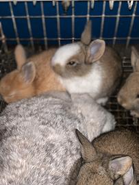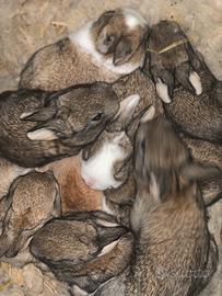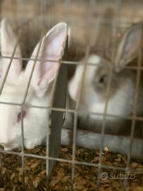 Conigli da carne incroci tra gigante delle Fiandre, gigante del Giappone, California, Nuova Zelanda piccoli di 40 giorni e grandi. I piccoli 10 € l'uno da 60 giorni in poi a 9 € il chilo.