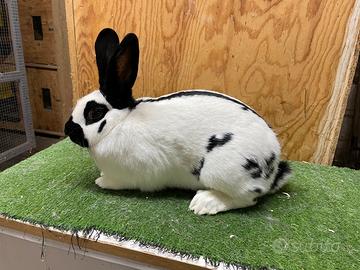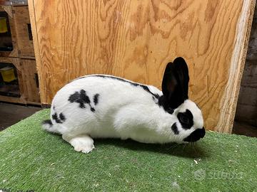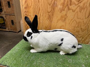 Pezzata Piccola, tutti gli animali sono vaccinati e iscritti al registro anagrafico. Disponibili nei colori bianco e nero oppure bianco blu, cuccioli o adulti pronti alla riproduzione, maschio o femmina. Razza molto prolifica e resistente come conigli nostrani. No giganti, no gigante, no papillon, no nani, no nano.