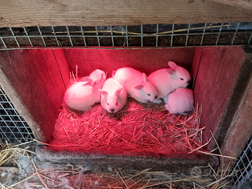 Piccolo allevamento con 2 maschi e 2 fattrici di coniglio California e 1 fattrice meticcia. Disponibili 6 coniglietti California puri, nati il 16 gennaio. Ho anche un gruppo di 5 quaglie da uova, non ancora in produzione. Zona Montichiari provincia di Brescia