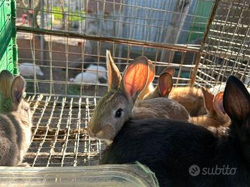 Cedesi conigli di diversa età... Dai 30 fino ai 50 giorni... Siamo maschi che femmine. 8 euro non trattabili...