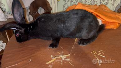 come da titolo vendo maschi di 4 mesi giganti delle fiandre neri nati da padre grigio e madre grigio ferro 50€ l'uno trattabili con acquisto di più conigli circa 70 cm di lunghezza e 4 kili