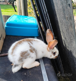 Vendo conigli nati l'8 febbraio, 1 maschio e 3 femmine. Sono un incrocio tra Papillon e Fiandre, due razze grandi. Prezzo 15 euro l'uno.
