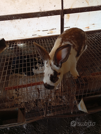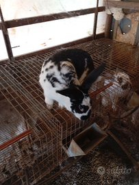 Vendo 5 femmine e 3 maschi di conigli incrocio papillon x gigante delle Fiandre a 30 euro cada uno se presi in blocco piccolo sconto l'età varia dai 4 mesi ai 10 mesi