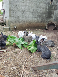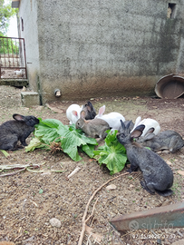 Disponibilità di conigli IBRIDI di gigante allevati in gabbia. Ibridi di fiandra, papillon,, californiano, nuova zelanda. Prezzo da concordare al momento in azienda. No spedizione.
