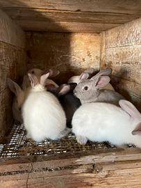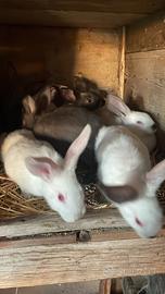 Stupendi conigli da carne allevati con metodi tradizionali alimentati con mele fieno erba e un po' di granturco peso da adulti 4/5 kg