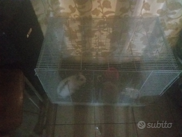 Vendo 2 conigli nani maschio beige e femmina bianca con macchie marroni più gabbia e tutti accessori sono di Presicce