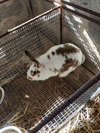 Vendo conigli la nera e la femmina già incinta di una settimana i piccoli anni un mese e mezzo e li vendo a 15 il padre e madre 20 luno