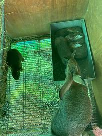 Disponibili conigli Leprini di Viterbo puri nati i primi di aprile , possibilità di formare coppie non consanguinee. Razza forte robusta rustica e molto prolifica , si adatta a tutti i tipi di allevamento sia a terra che in gabbia carne molto buona e saporita a differenza di un coniglio normale . A 3 mesi raggiunge il peso di 3 kg circa . Disponibili da subito