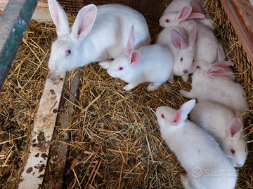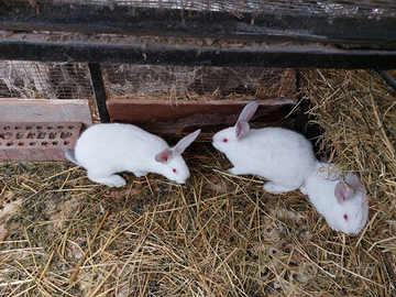 Vendo conigli da carne in varie colorazioni, Da 50 giorni in su, allevati a fieno e mangimi naturali. Prezzi dai 7,5 €/cad ai 20/cad € in base ad età e quantità. No perditempo e sopratutto NON SPEDISCO.