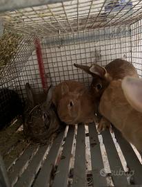 Vendo conigli vari età maschi e femmine Per produzione o carne A partire da 15€ Possibili anche consegna prezzo da parte