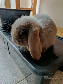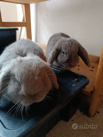 Cedo coppia di coniglietti ariete nano blu di 3 mesi circa, i coniglietti sono abituati al contatto umano e NON MORDONO, data la giovane età per correttezza dico prima che sembrano essere un maschio(grigio) e una femmina(blu) ma non posso garantirlo.