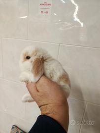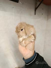 Teneri cuccioli di conigli nani ariete mini lop vari colori docili abituati al contatto umano
