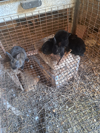 Vendesi conigli nani, maschi e femmine, di colore nero e grigio