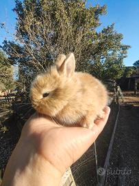Cedesi cuccioli di coniglietti nani colorati, ceduti con trattamenti antiparassitari effettuati e ciclo completo di sverminazione. Consigli sulla gestione. Disponibili da questo weekend, possibilità di consegna entro il raccordo con un sovrapprezzo. Per altre informazioni contattare il numero 3406273788