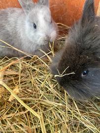 2 coniglietti, incrocio con ariete e testa di leone disponibili Abituati al contato umano da quando sono nati Verrano consegnati con antiparassitario esterno stato messo Regalo sacco di fieno per i primi giorni Per dubbi o altre foto contattate