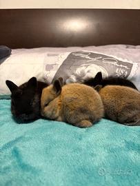 Coniglietti nani ,nati da madre coniglia nana e padre ariete. Nati il 12/11/25. Molto affettuosi e tranquilli, abituati a gatti e cani.