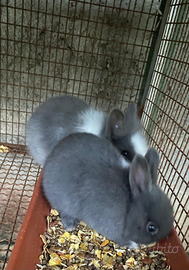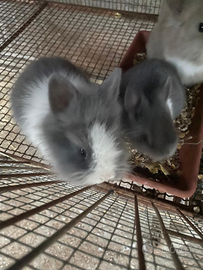 Cedo 4 conigli nani di circa due mesi di età, come in foto. Due varietà testa di leone due striati nani. Prezzo cadauno
